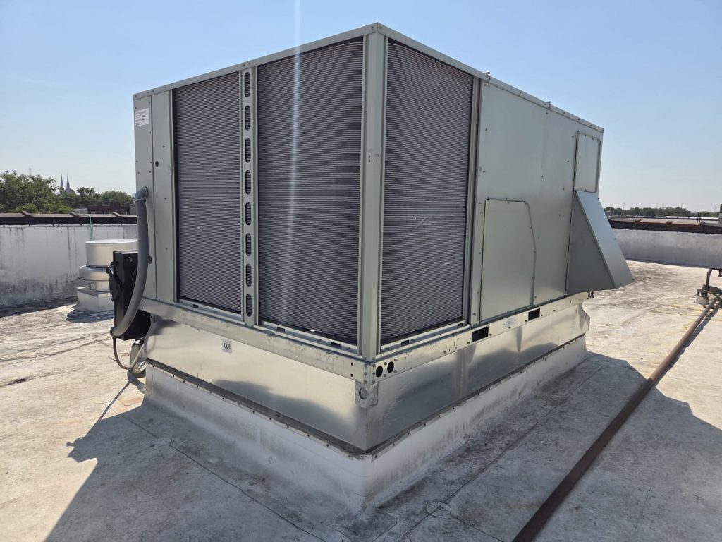 RTU install in Chicago's Little Village replacing an outdated HVAC unit with a new high-efficiency American Standard RTU. Given the unit’s size and rooftop location, we brought in a certified crane crew to safely lift and position the equipment. Our team handled all aspects — from permitting and lift planning to system commissioning.