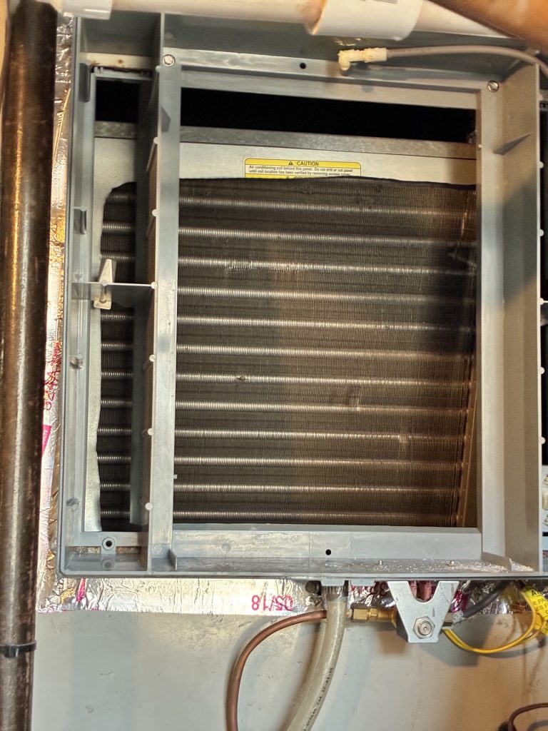We responded to a no-cool A/C emergency in Irving Park. Our HVAC techs quickly diagnosed a frozen evaporator coil and line set caused by a dirty air filter and low refrigerant levels. After thawing the system, replacing the filter, and recharging the refrigerant, the air conditioner was back to cooling efficiently. Regular filter changes are key to preventing A/C issues like this.