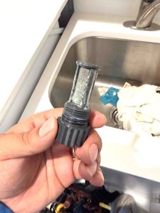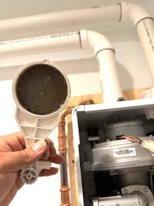 Next, we performed full maintenance on the Navien tankless water heater. We cleaned all internal screens and inlet filters to restore proper water flow. This step helps protect the unit from debris and buildup.