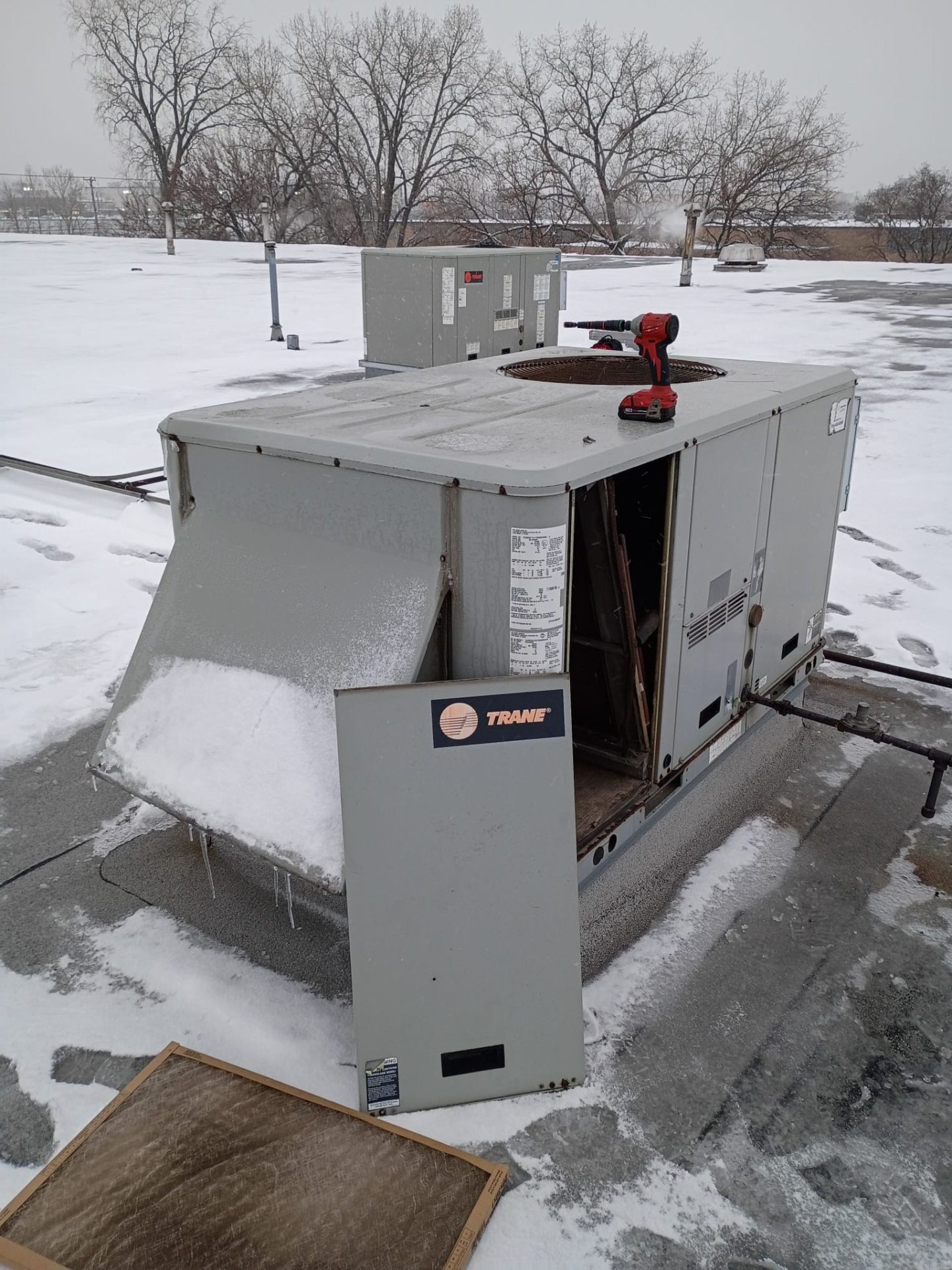 Our certified expert technicians responded to a no-heat issue involving a packaged rooftop unit (RTU) and air handler at a property in McKinley Park, Chicago. The system was inspected to determine the cause of the heating failure. Faulty components impacting heat operation were identified and repaired to restore proper heating performance.