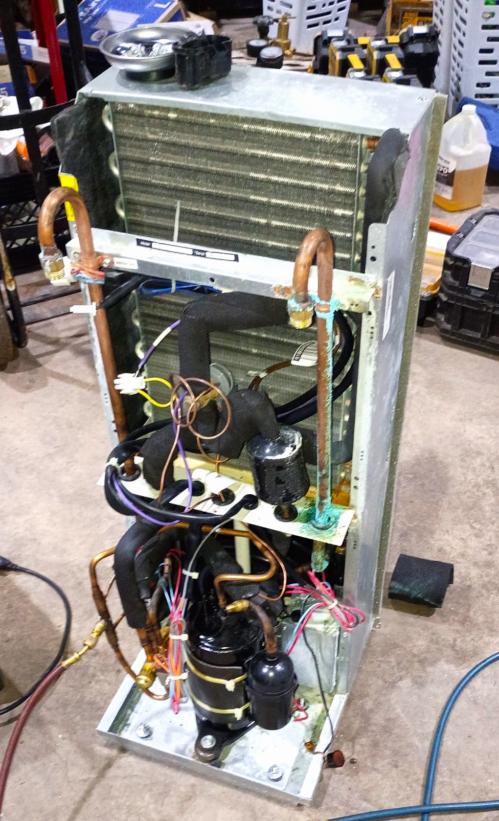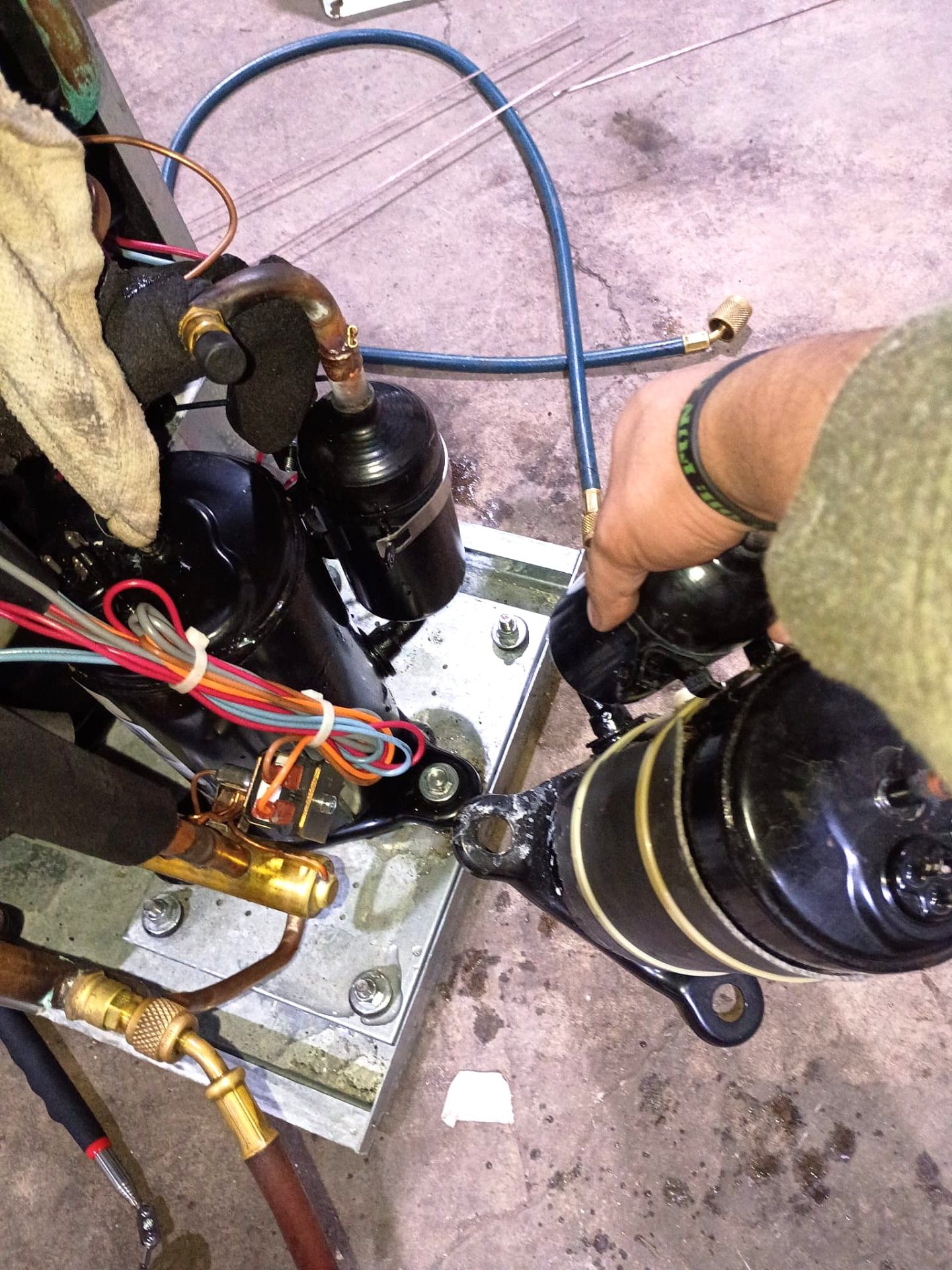 We protected surrounding finishes before removing the failed compressor. The refrigerant lines were carefully cut and disconnected while preventing moisture and debris contamination. We installed a new factory-approved compressor and brazed the refrigerant connections to manufacturer specifications.